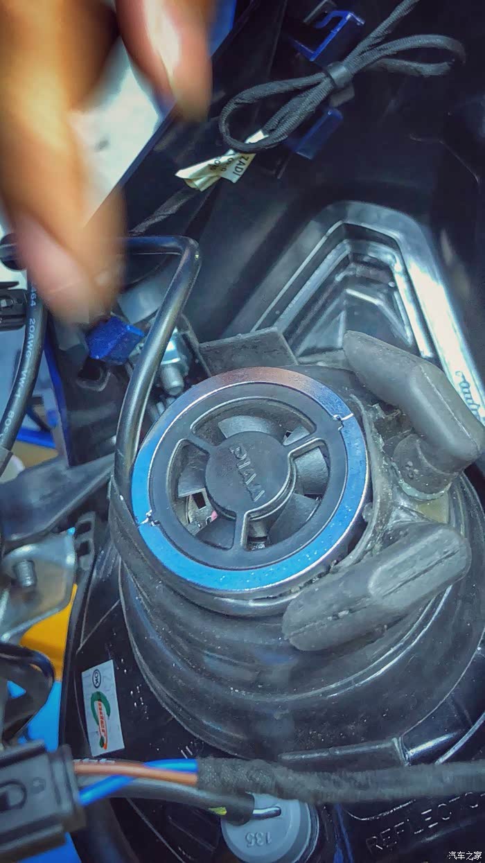 接下来就是大灯。 原厂的飞利浦卤素大灯,亮度低,黄光也很low。 直接换了一支日本PIAA LED大灯。 漂亮的切割线,超强的亮度,超远的射程。 LED的白光也一下子提升了质感。 零售价880,还可以接受。