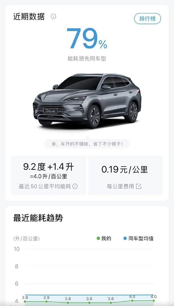 首先说说油耗和电耗方面吧。我之前开的是一台1.6L的大众燃油车,油耗相对较高,尤其是在市区拥堵路况下,油耗经常会上到8.4L/100km以上。而换了宋PLUS DM-i之后,情况有了极大的改善。我平时上下班大概50公里的路程,用纯电模式完全够用,而且家里安装了充电桩,用的是谷电价,一度电才3毛多,算下来一天的通勤成本也就5块钱出头,相比之前的油费节省了不少。长途表现也让我很惊喜,回老家来回400多公里,加了200块钱的油就搞定了,还剩不少。半年下来,我算了算油费支出不到700块,还都是跑长途时加的,这省油效果真不是开玩笑的。