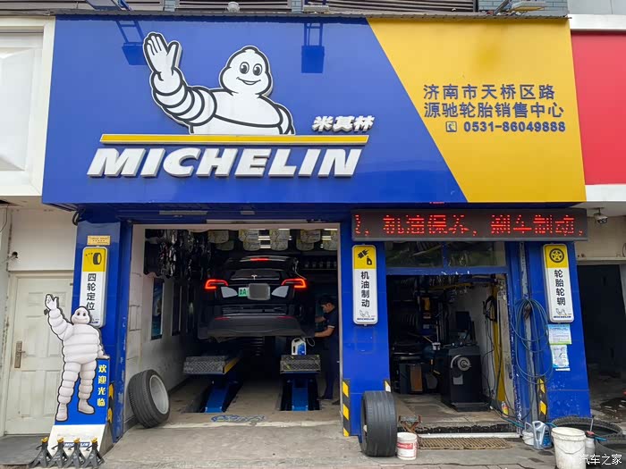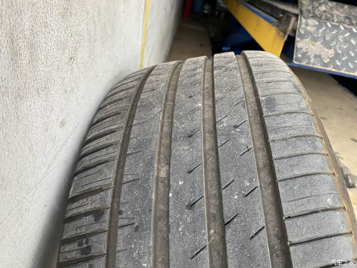 夹私货,看看2.5万公里胎压2.2-2.3的19寸米其林PS EV的胎面,磨损很均衡。