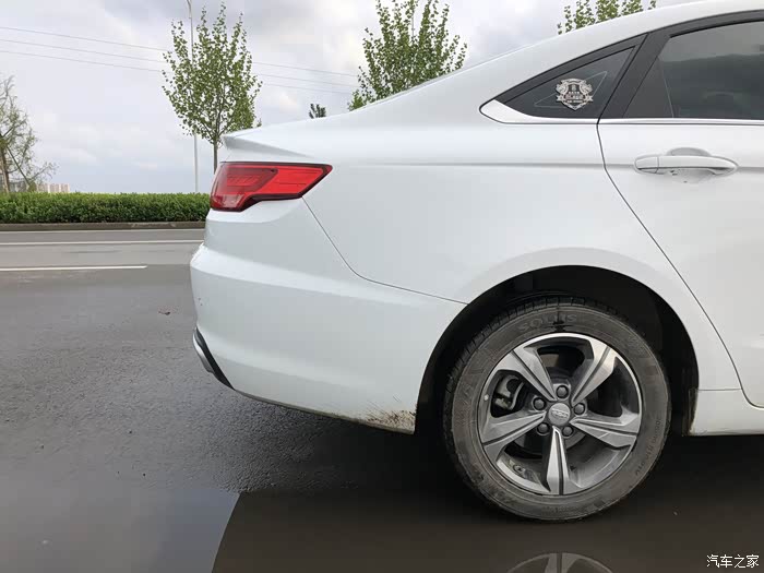 帝豪GL的进气格栅采用了吉利家族特有的水涟漪式设计风格,车身侧面的凹凸槽从车头贯穿到车尾,看上去简洁有力。溜背式车尾造型又为整部车增添了不少轿跑的气息,整个外观看起来运动不失沉稳。这也是我买车的时候千挑万选看中帝豪GL的一大因素,一眼看上去有一点轿跑的感觉。运动感的前脸,六块腹肌的吉利logo,远近光为一体的鹰眼式大灯,还有两个小酒窝式的出风口,流线型的侧身,简约大气。鸭舌式微微翘起的尾部!两条腰线,符合年轻人的气质!