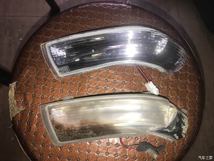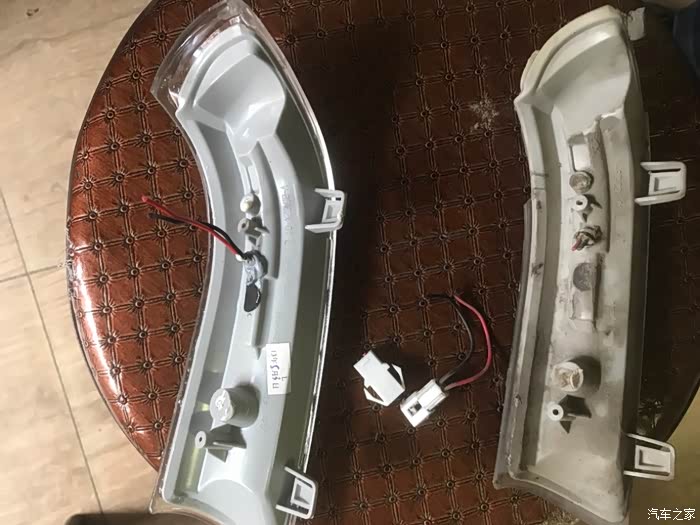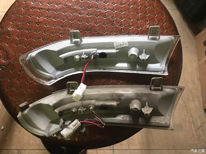 然后转向灯就可以拿下来了,此时要不要把旧的扔掉?no,旧的还在发挥余热呢,插头不一样,估计这就是嘉誉和v80的区别,左边是v80,右边是新的