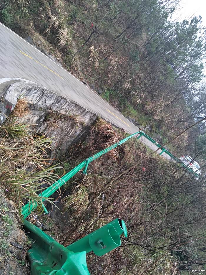 )!但是比来单龙寺的盘山路稍微好开点,最后终于开到晓天镇,头晕的都想吐。下次再也不想来了!总结:主要这样的盘山路太危险,绝对不适合新手或女同志开,两边一会车,特别是弯道那里,真的要十分小心,掉线去就粉身碎骨,但是大威的表现非常好,弯道很稳,虽然下雨,但是抓地也很牢,方向很精准,连续的弯道,连续的下坡,给了我满满的信心,也可能是28T四驱特有的稳定性!以下很多图片都是在车里一边开车一边拿手机拍的,还是非常危险的,拍的不是很清楚,大家将就一下啦!