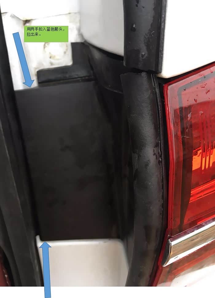 左右刹车尾灯的改动,用手在图中箭头位置拉出塑料扣板,里面还塑料卡口,韧性很好,不用担心会掰断。