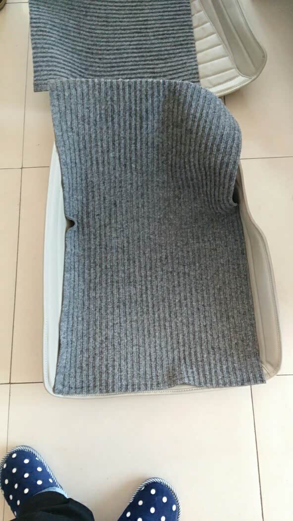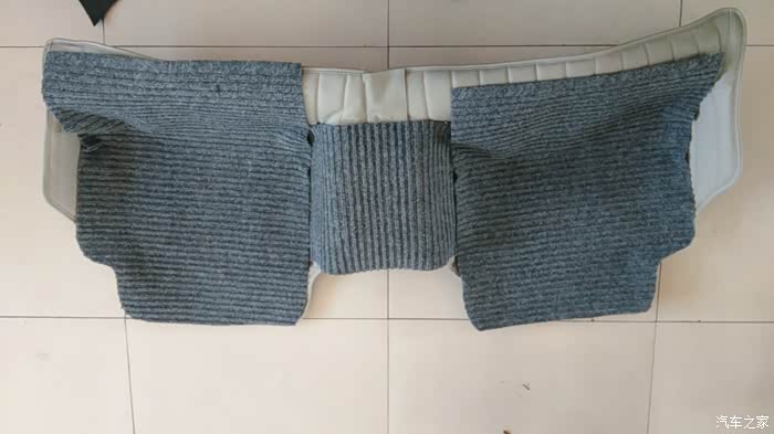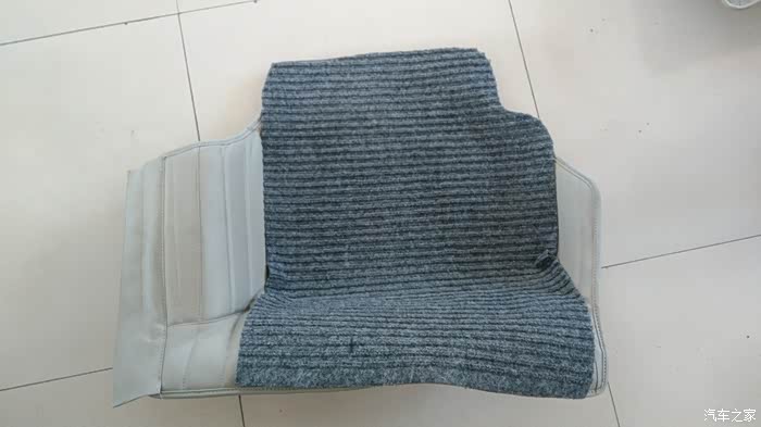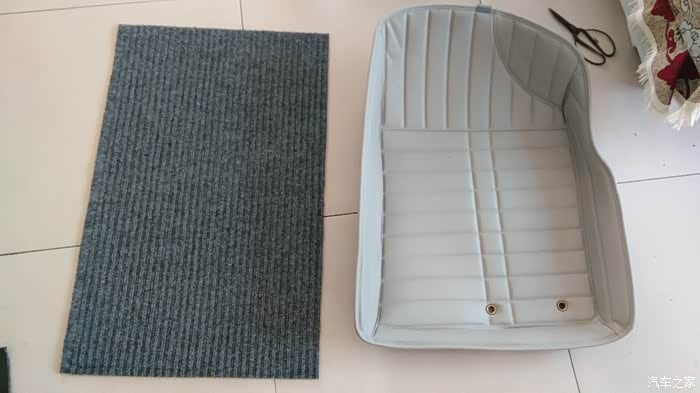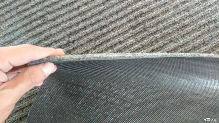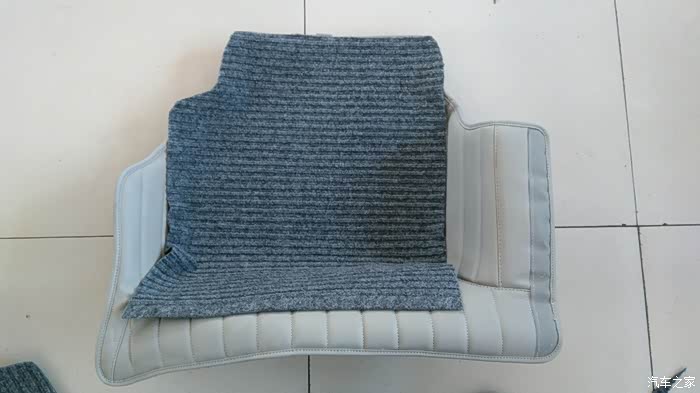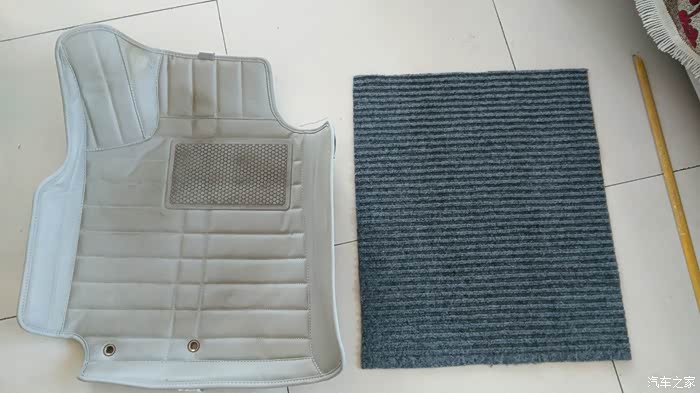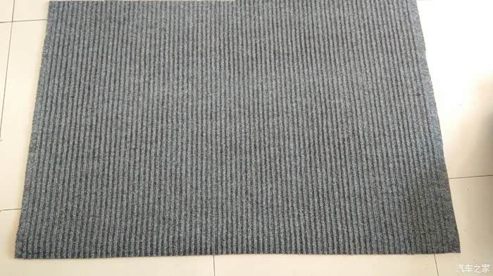 提车一个多月后,我这强迫症患者就寻思着在脚垫上面再加一层耐脏易清理的垫子,逐到我大县城万能的富源巷来寻找合适的材料,逛了两三家专门卖迎宾垫的商铺,本想要丝圈的那种,无耐丝圈的都是红色,且都太厚!这不无形中增加了车重么,放弃!后来看中一款正面灰色毛绒脚垫,背面为胶皮面防滑,重点还不重!价格由原价28一平砍价到23一平,因为在家已经量好尺寸,就让店家裁了1.56平,总价35.88元,又让抹去个零,总共35块钱搞定。下面给大家看看裁剪过程及成果