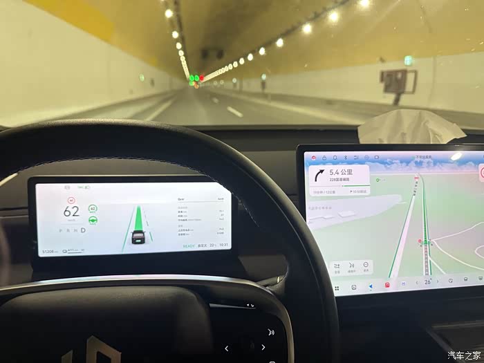 这次更新后隧道中的LCC车道居中功能表现,屏幕动画显示也有更细致的变化。进入长达数公里的隧道后,我果断开启该功能,跟车加速平稳顺滑,双手轻搭方向盘就能轻松应对,大幅减轻了隧道行驶的疲劳感。这种靠谱的智能辅助体验,在同价位车型里堪称诚意满满。
