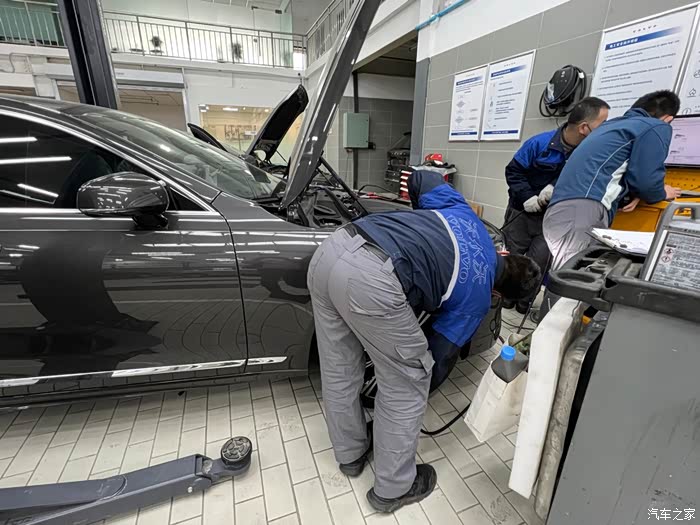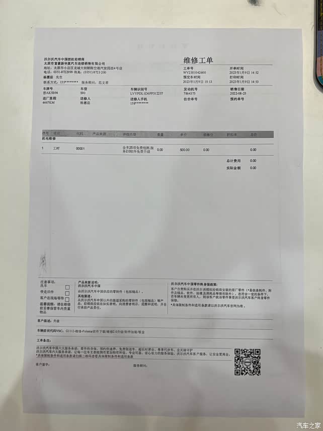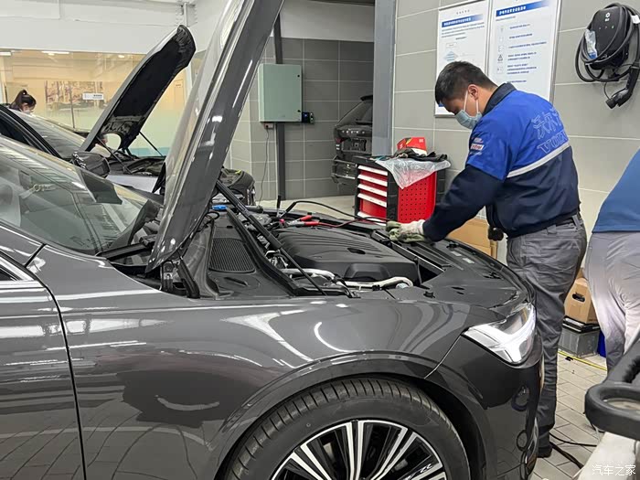 因为我是第一次升级所以直接去了4S店里。到了之后售后引导你进入保养车间,然后停好车之后询问需要保养的项目,然后将主驾驶套上一次性塑料套,脚套,方向盘套。然后售后小哥哥给我讲述了会检查保养哪些地方,并且签了一份车辆环检单跟维修工单。然后我就去会客室休息喝水,并且也去展厅去看了车。