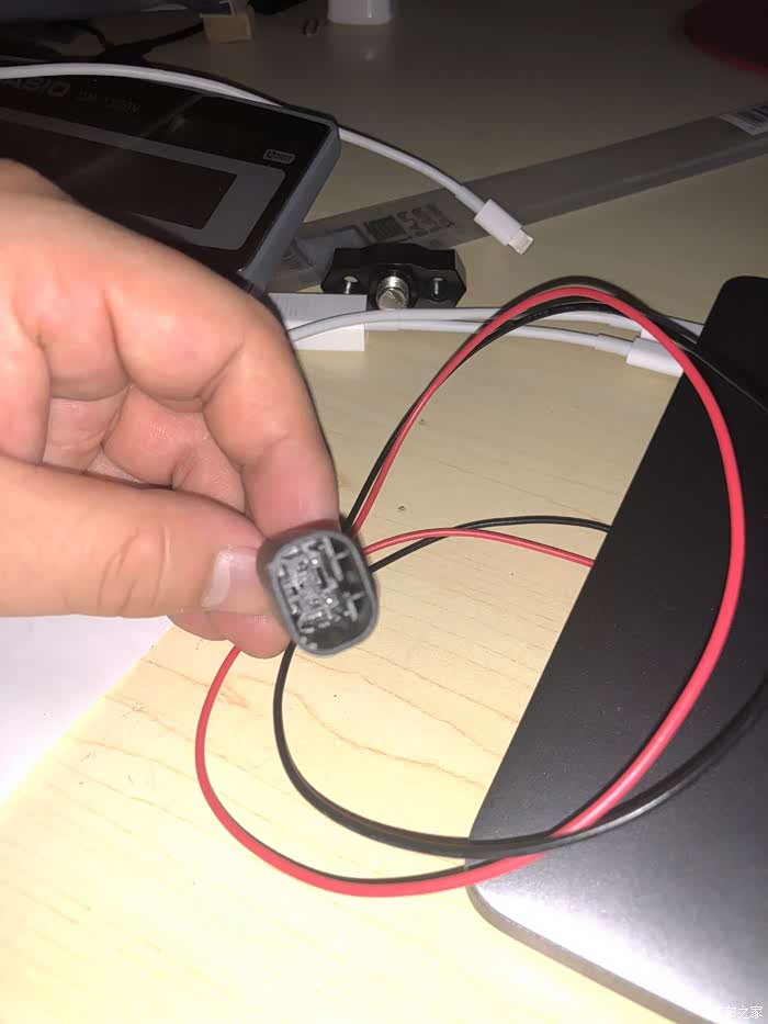 这个是拿铁车上的供电插头实物。 这个插头是三根线,其中棕灰色是打铁地线。 红白相间测电压是13.5V (供电),