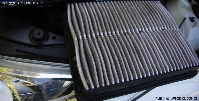 打开后看到原车的空滤了,这个就是我们今天要换下来的东东