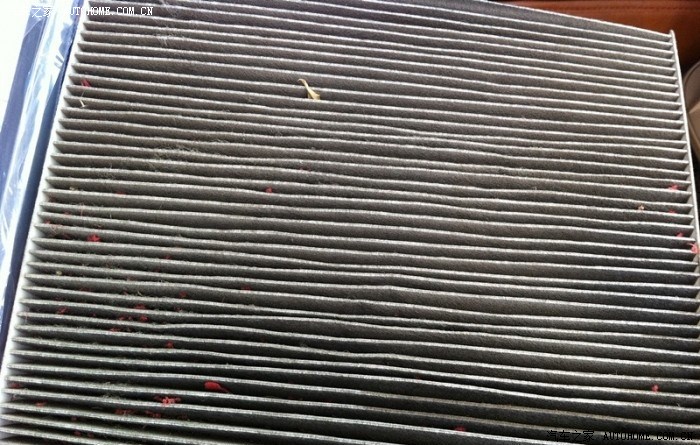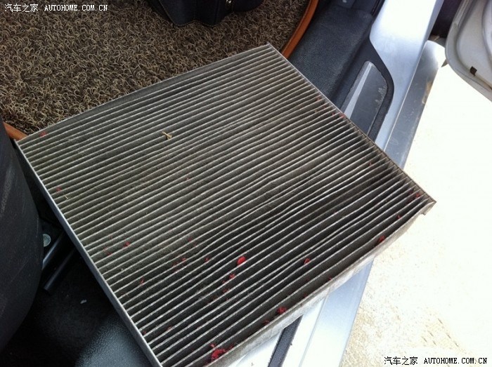 原车的滤清取出来,上面留有草屑和昆虫尸体,已经很脏了