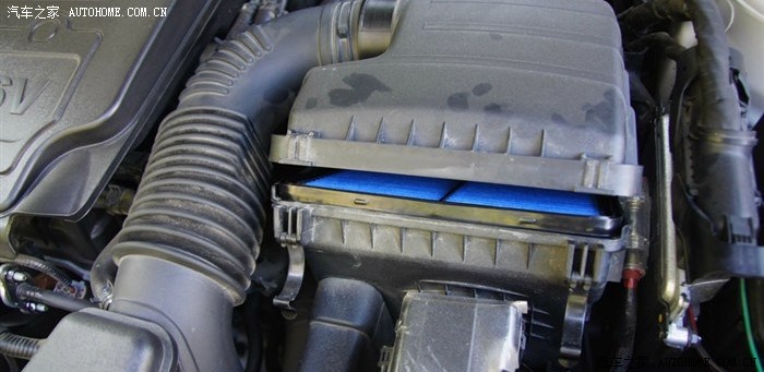 先把滤清盖子上的两个铁片搭扣扳下来,然后松掉进气管,就可以打开盖子了