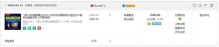 终于等到飞歌旗舰店特价活动,成交金额3580元.