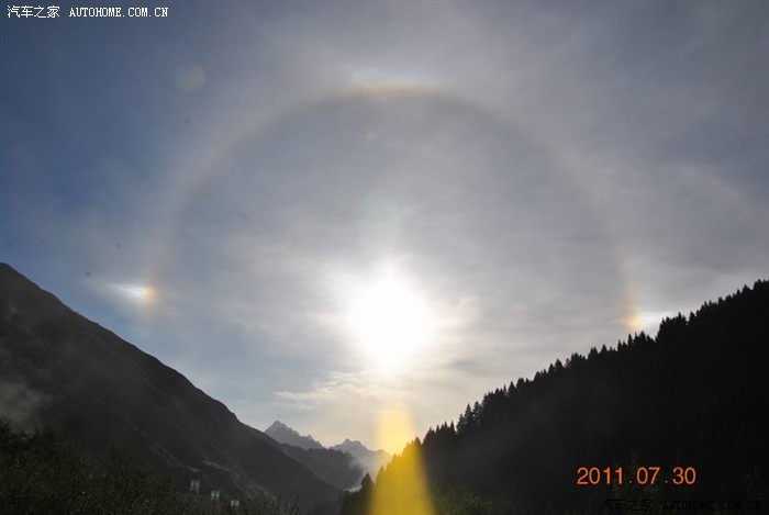 由于前一天下暴雨,泥石流把道路阻挡,经过抢修于晚上21:00到达黄龙。运气非常好今天刚出黄龙就看见了光韵,赶紧停车下来拍照。