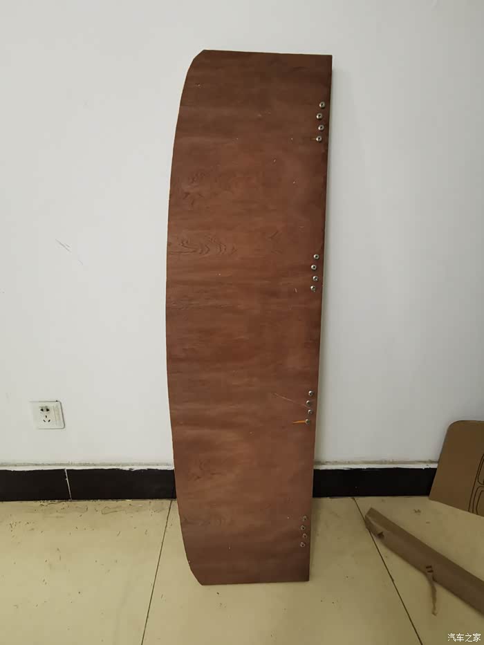 五层胶合板刚裁好时的状态,中间用四个合叶固定,紧固件用的不是铆钉,叫对接螺丝。