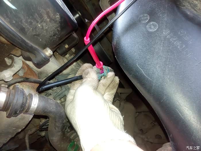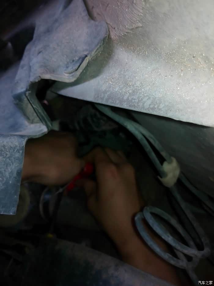 个子矮的车友还是别从车底安装了,不光需要修车的升降机,就是升起来了也难于够摸到节气门的位置。卸掉左前轮胎,从侧面安装比较方便。