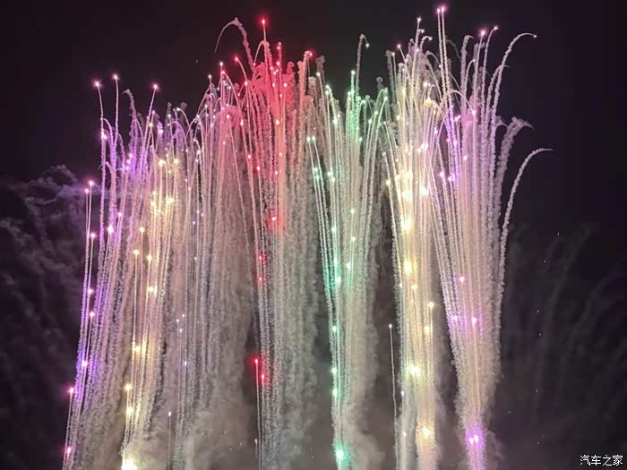 每天晚间六点正式开始放烟花,在激动人心的巨响和脆响中,整个城市的上空都被焰火照亮了,染红了,一团团盛大的烟花象一柄柄巨大的伞花在夜空开放,像一簇簇耀眼的灯盏在夜空中亮着;像一丛丛花朵盛开并飘散着金色的粉沫,焰火在夜空中一串一串地盛开,最后像无数拖着长长尾巴的流星,依依不舍地从夜空滑过。