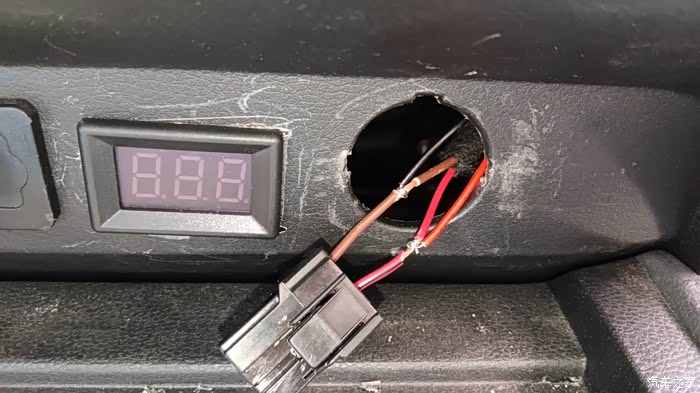 点烟器开孔26mm,和原车一致,不用开孔,就是原车电源插座卡的好紧,不好撬掉,得费点劲。