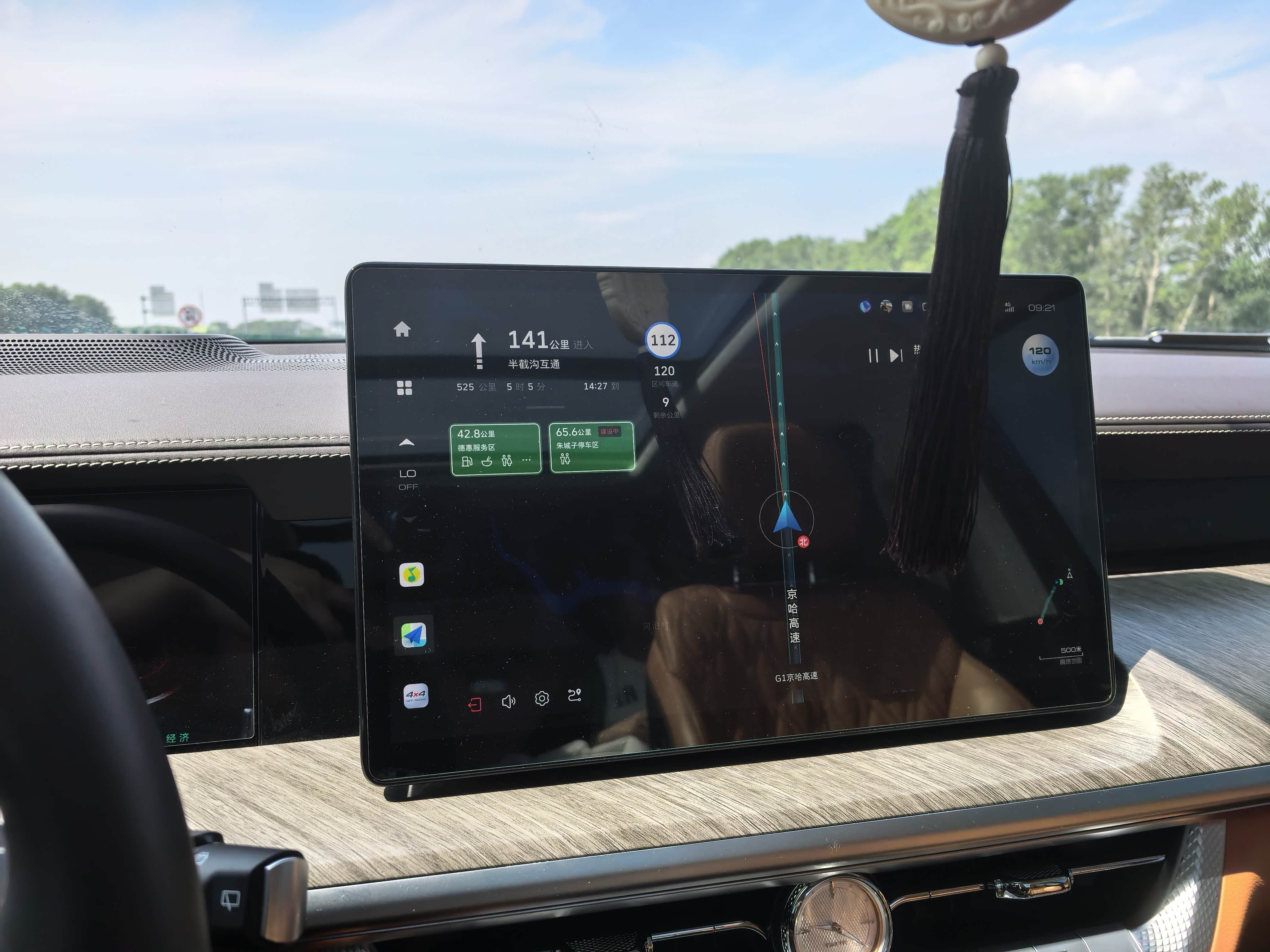 从长春出发距离千山大概400多公里,我们根据坦克500的车机导航一路行一路停一路快乐的小精灵!但当走到南山村的时候由于高速修路导航就提示比较拥堵所以跟着车机的另一套方案出行,下高速穿越国道然后经过城区路况,虽说绕点远耽误一点时间但总比高速一动不动堵车要强啊。即便是如此折腾坦克500的油耗依然在9L左右,对这样的油耗我还是比较满意的。