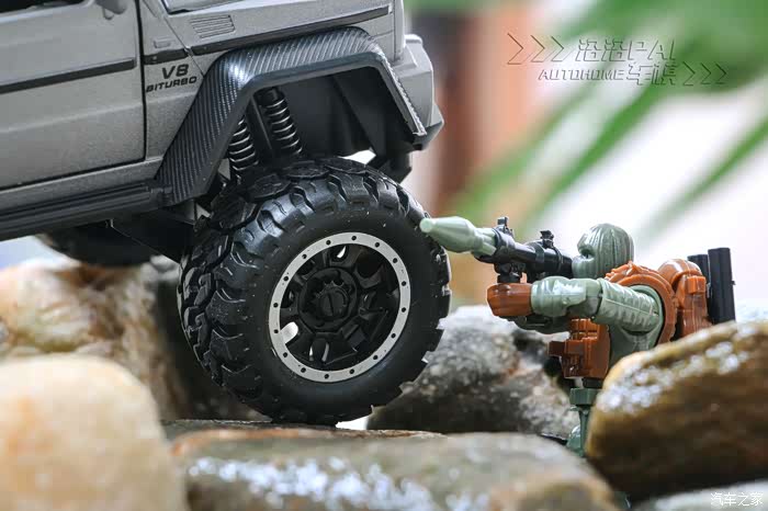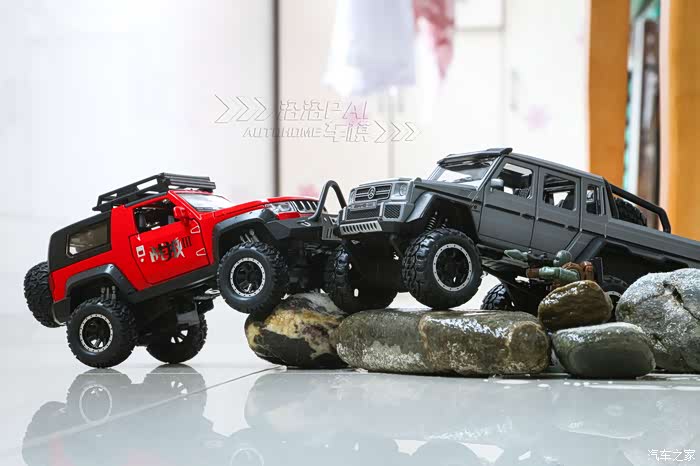 BJ40跟大G一比,这轮胎差了不少,同为1:32的车模,车身部分是合金材质,其他都的是塑料