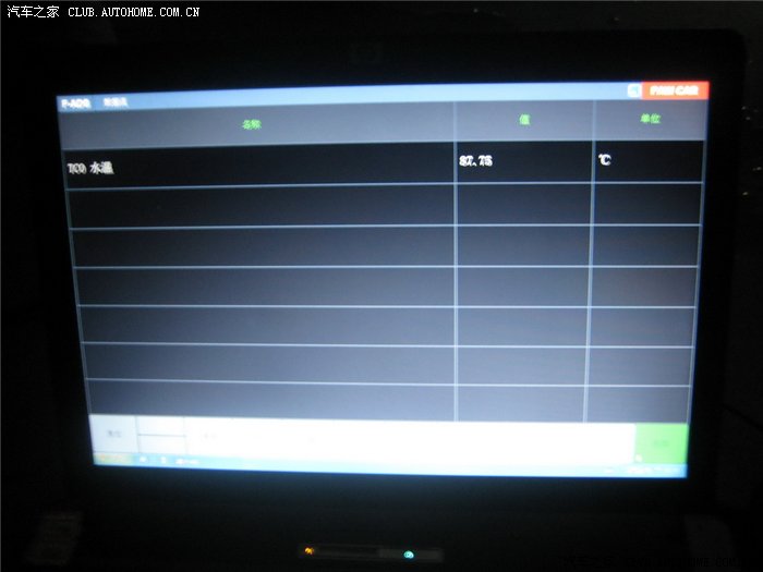 我车到4s的时候,水温表显示5格,电脑检测的温度是87.78度,有可能是路不太远的缘故,温度还没到最高。