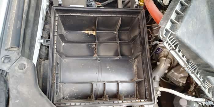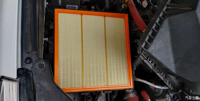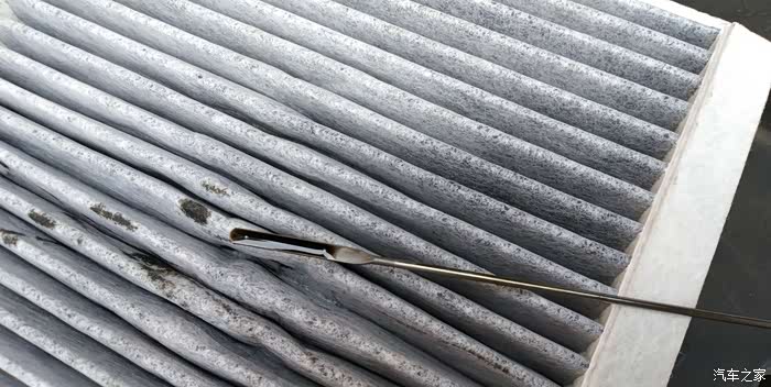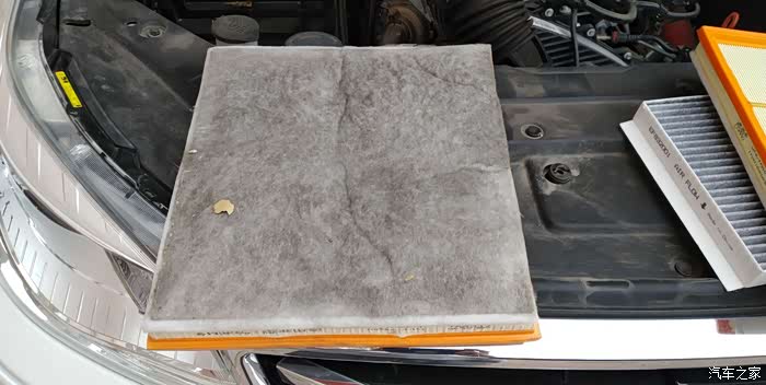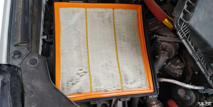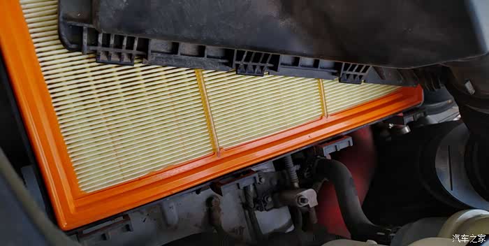 打开进气盒,滤芯的滤纸有些变形。