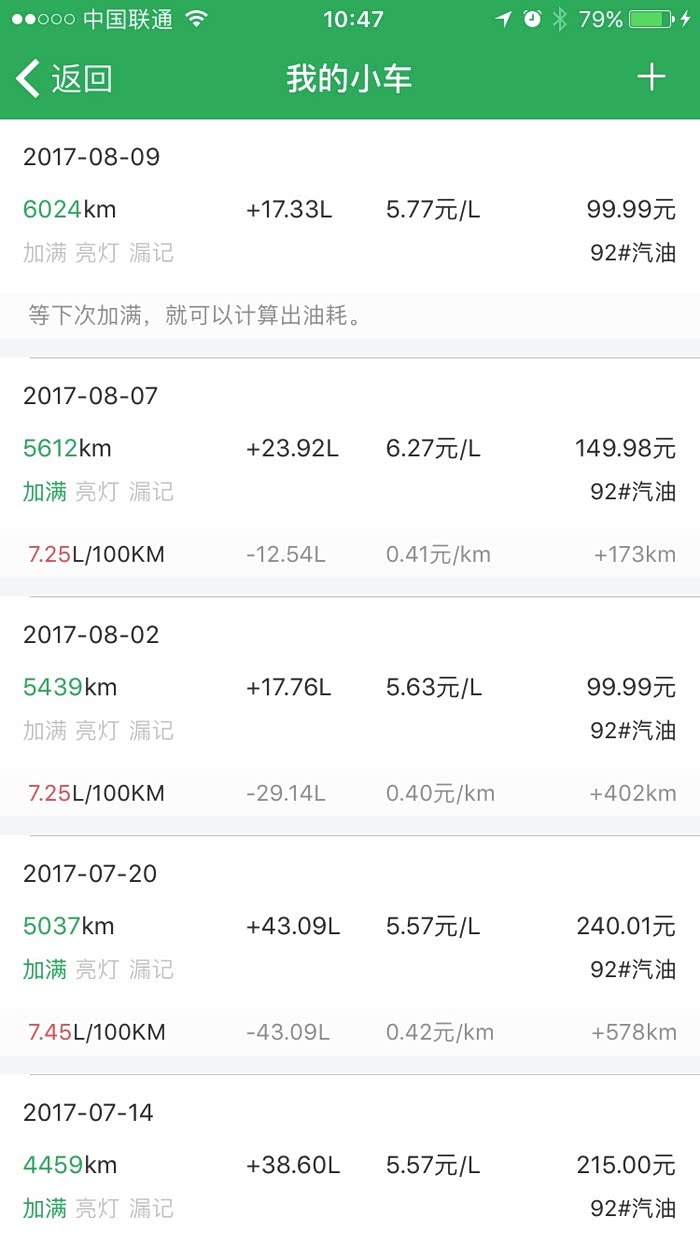 附下从提车到至今的用油记录和油耗情况