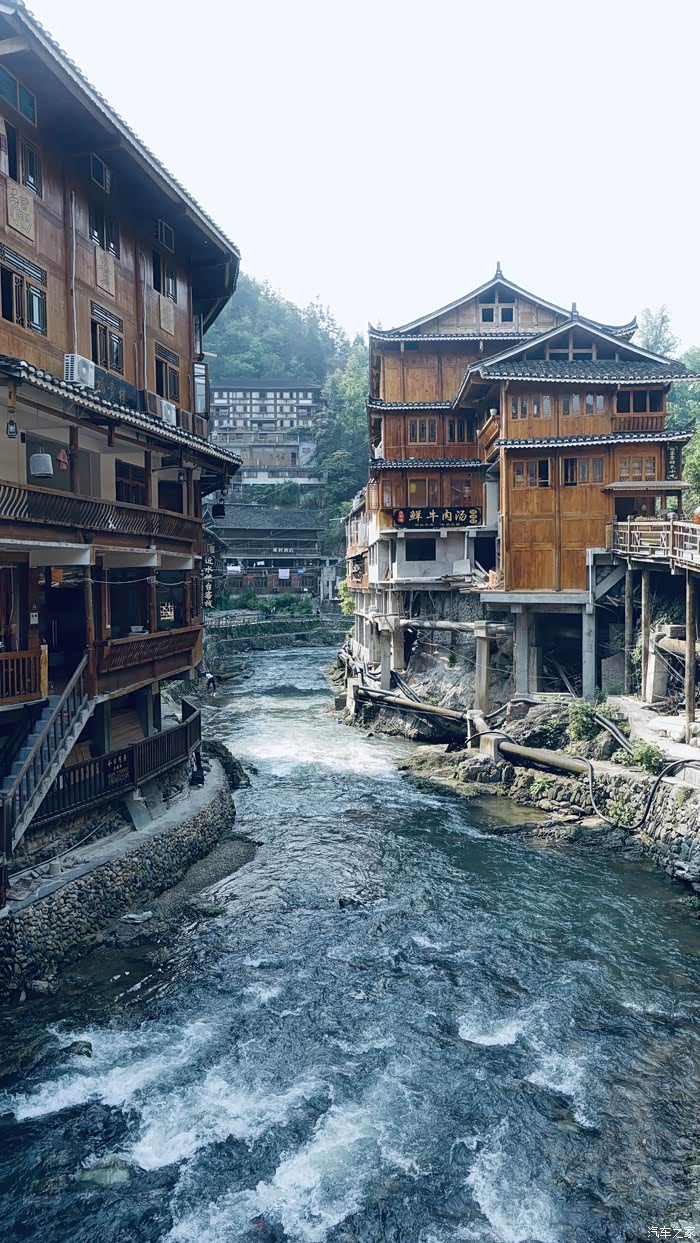 18:30到西江千户苗寨啦~雾蒙蒙的呢!冷风袭来,从这里开始就要加衣咯!在停车场停好车,拿行李,买票,坐景区的区间车进景区