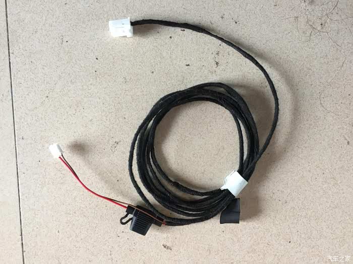 这是防炫目后视镜做好的线,两端都是插头的。为了调试方便,我没把接电那头直接插到选装的插头里面,而又接了一个插头,而胎压监测的接线其实和后视镜并联的,也就是说正极接在一起,走IG2通道,负极一起搭铁就好。