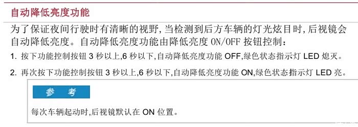 防炫目后视镜的效果也很有意思,由于车后玻璃贴了膜,一度让我因为后视镜不起作用,终于有一天跑到天然的远光狗——大货车前面,后视镜逐渐变成了墨蓝色,看着非常舒服,效果远比手动的好。