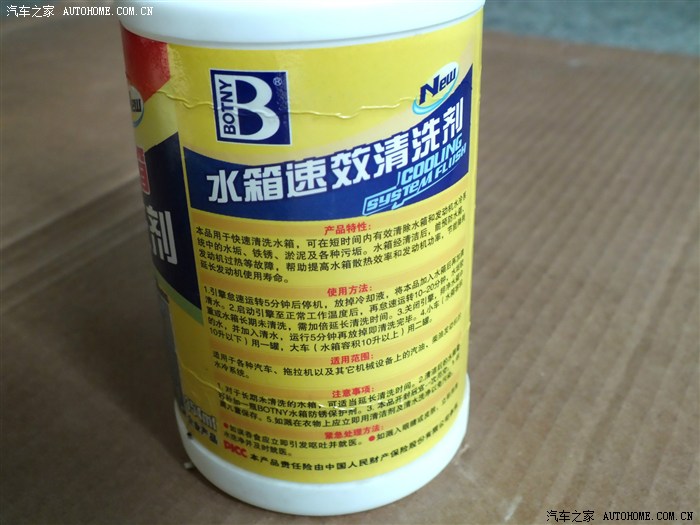 用车时间虽不长,还是用水箱清洗液清洗一下水箱,上面有使用说明,然后再用清水清洗几次。注意:每次都必须使节温器打开实现大循环