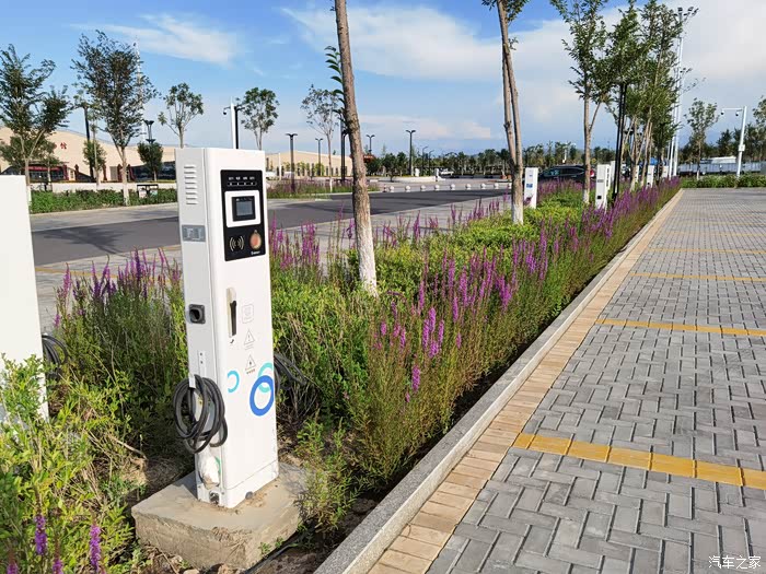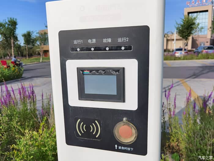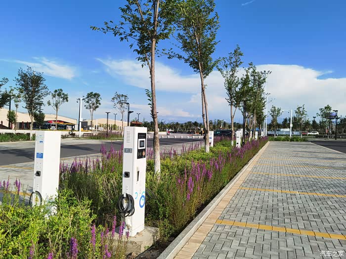这里是独山子市区的独库公路博物馆的入口处,安装了几排充电桩,我全部都看了一下,都是交流充电桩,除了这个地方有充电桩之外,在市区的其他地方还有充电桩,就有快充。