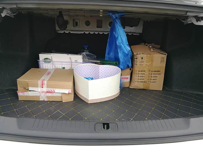 别看我家英朗是三厢轿车,可是一年365天下来后备箱里却能容纳下很多东西的,像平常我单位的纸箱子就能放好几个呢~