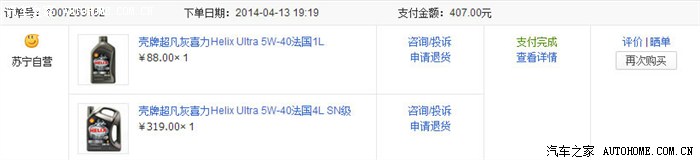 无意中发现su宁有在卖壳牌超凡灰喜力Helix Ultra 5W-40法国4L SN级,还是法国版的呢,标致老家不就是法国吗?哈哈 于是就决定了在这下单吧.