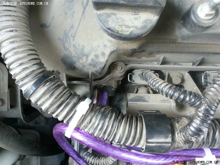 本来是想直接安装在喷油嘴支架的螺丝上,后来想想尽量不东发动机上的螺丝,在寻找中发现了现在这个安装位一个空的螺丝孔。