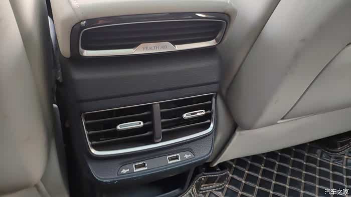 而且,后排空调出风口出风量还不错,还配了两个USB接口,后排乘客也能充电,不过我觉得这个接口如果涉及在空调出风口上方就好了,有些乘客的充电线不够长。