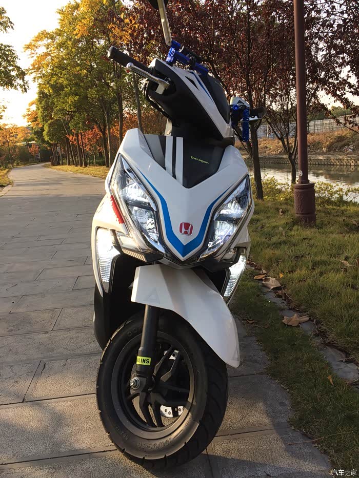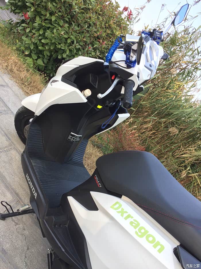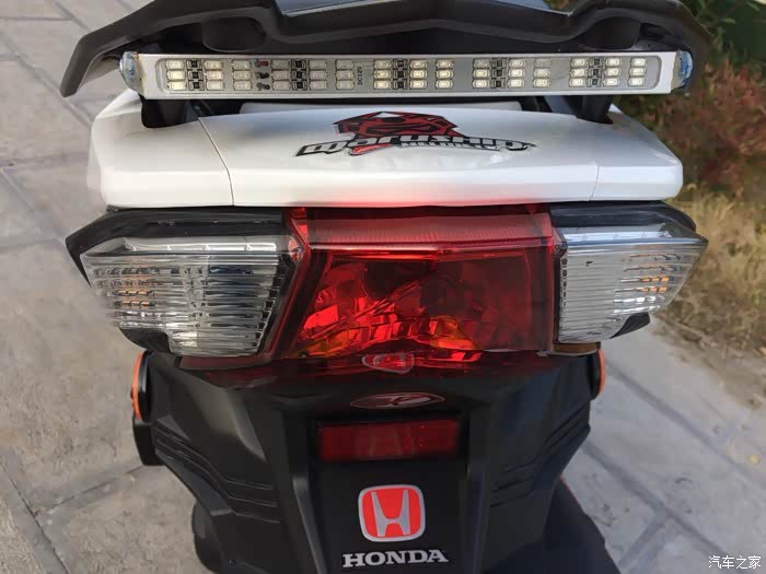 之后嘛就各种看 其中看了CB190R GSX250R 越看越跑题!最终想想自己的初衷 就是想买款踏板代步用 最终把目光又回到了裂行 当时乍眼看中了灰色款 当时店里那一台是后置脚刹低配版 最终还是选了白色 幸亏当时选了白色 很耐看个人也喜欢白色 家里车就白色的 果断开了票9800 汽贸距离家还有几十公当时在国道基本都是油门到底 一路拉回来 本人的观念不管它有没有所谓的磨合期 车子这东西买来就是用的 保护得再好两三年也得看腻了 裂行在我手上以用几个月了 6月21号提的车 还有在此跟大家交代一声 本人是个爱折腾瞎折腾的人!回来折腾了好多东西 全车除了大灯是原厂LED 其他卤素灯泡也都换成了LED 其中有几个灯买不到合适的尺寸 和我想要的效果 买回来又各种DIY 最终的效果都是我想要的 大爱啊!不多说上图……