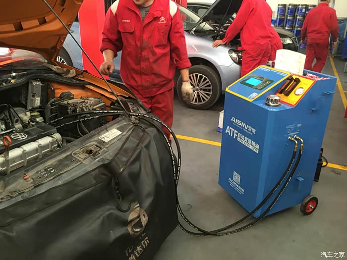 为了方便各位车主熟悉爱信变速箱采用循环方式更换油的过程,特整理了些换油图片供大家参考: