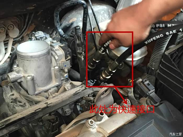 连接爱信全自动循环机换油机换油管与刚替换的散热器专车专用换油接头(此处为快速接口头):
