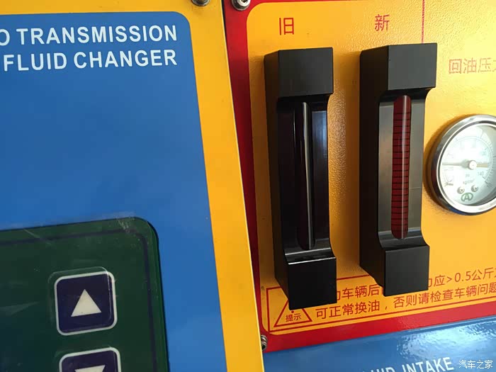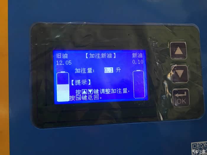 第四步:加注新油0.1L(因不确定刚加的变速箱油是否合适,可以多加一点新油进去,完成后,关闭爱信全自动循环机换油机器,拔下电源)