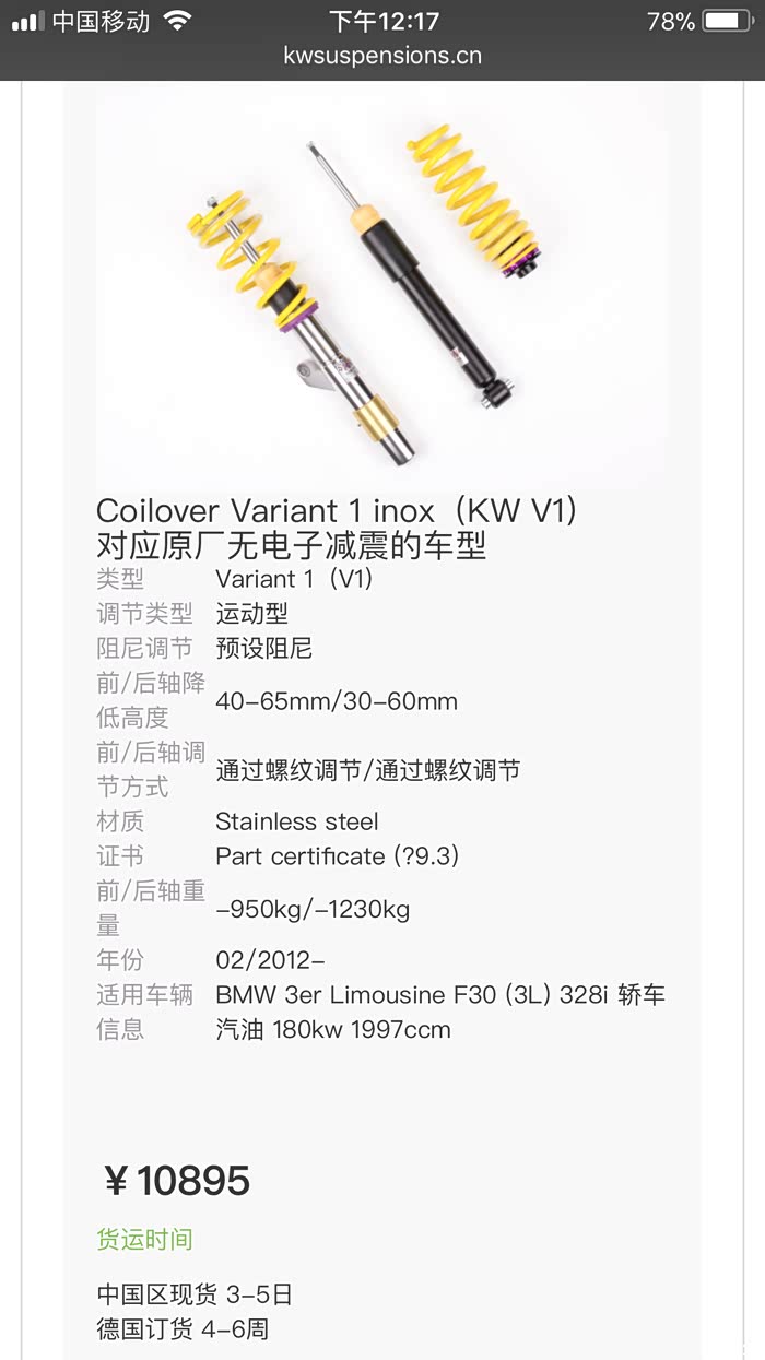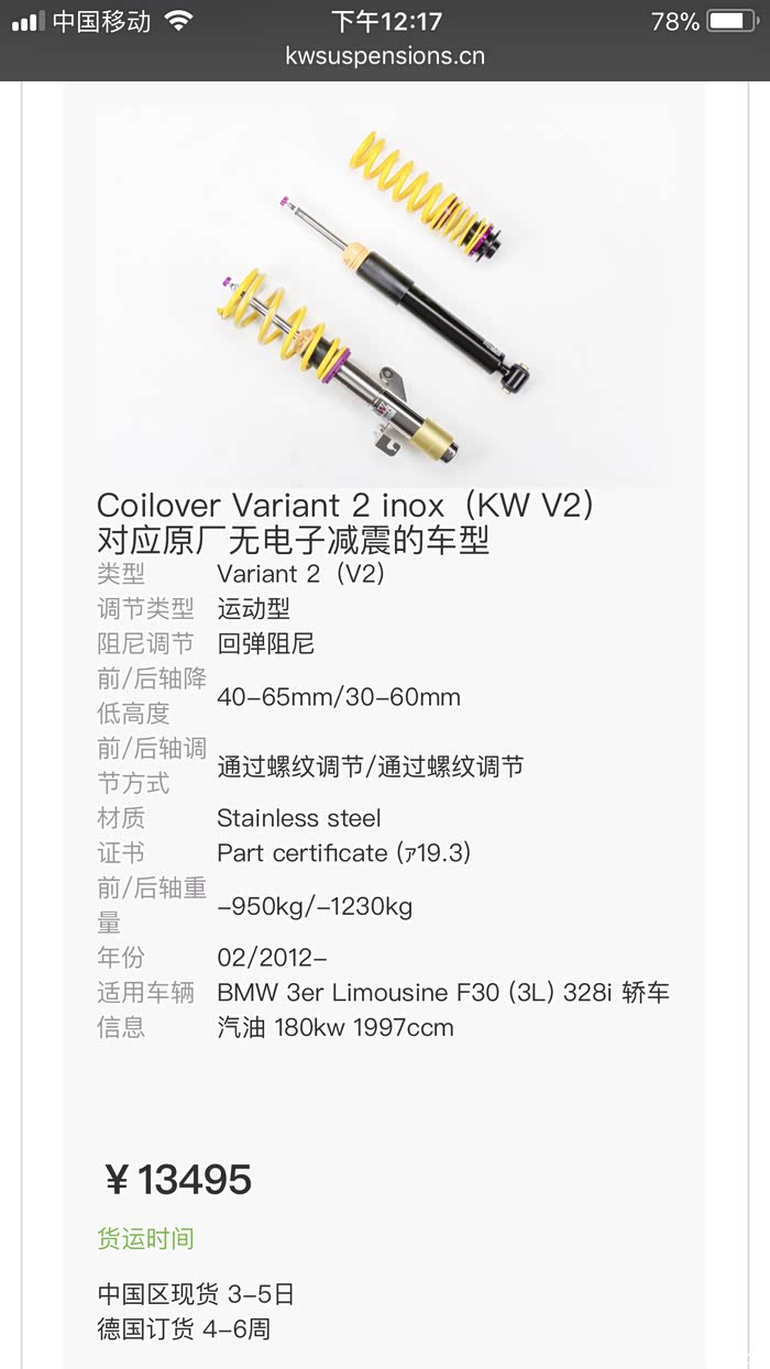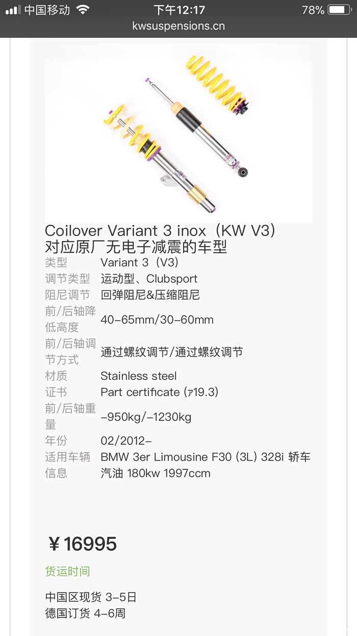 KW旗下的产品明显比B家的避震高一个级别,下文会详细介绍