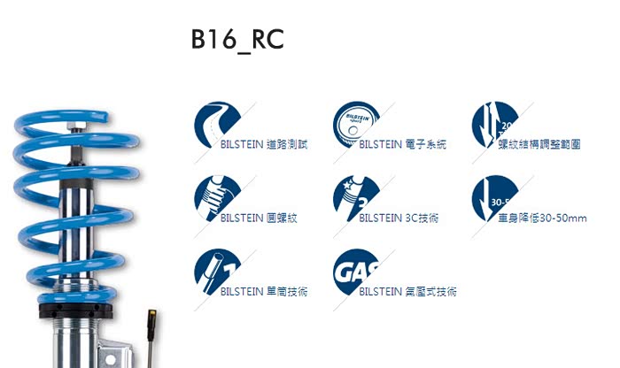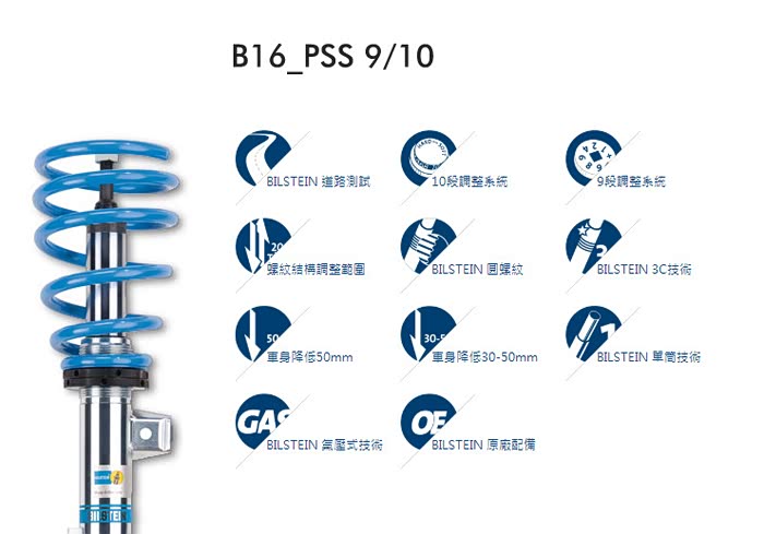 Bilstein PSS10 B16,B16高低?弹簧预压合并在一起了,车身越低,弹簧行程越长,弹簧受力情况的改变最直接的白话就是:长了了之后软和舒服;越高,行程短,弹跳越明显,不过支撑越好,压缩阻尼和回弹阻尼也很简单,共10节可以同时调节压缩和回弹。