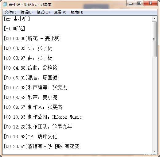 用记事本打开*.lrc格式的文件