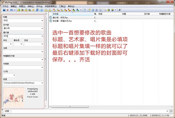 第二步,用mp3tag修改歌曲标签