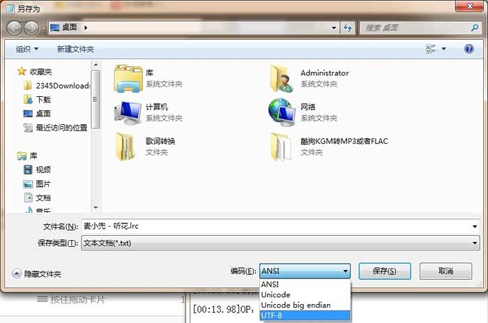 (有的电脑另存为的文件格式是*.lrc.txt,直接把.txt删除即可)