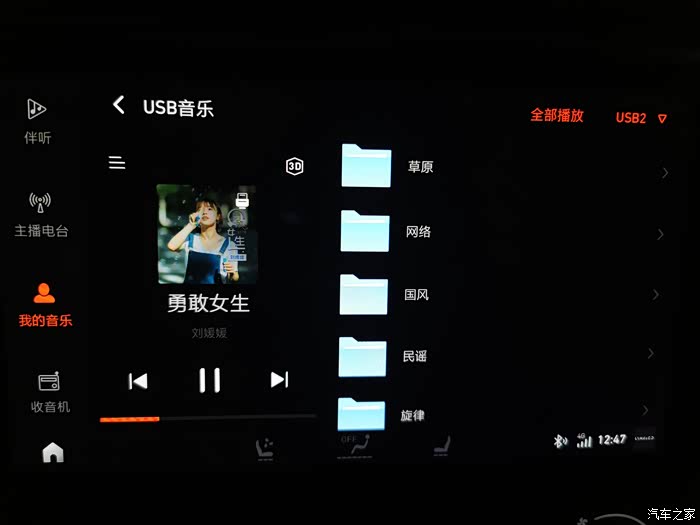 在这里我是把歌曲按照曲风分了下类,存在了不同的文件夹中,这样就可以在不同的驾驶场景中听对应曲风的歌曲啦