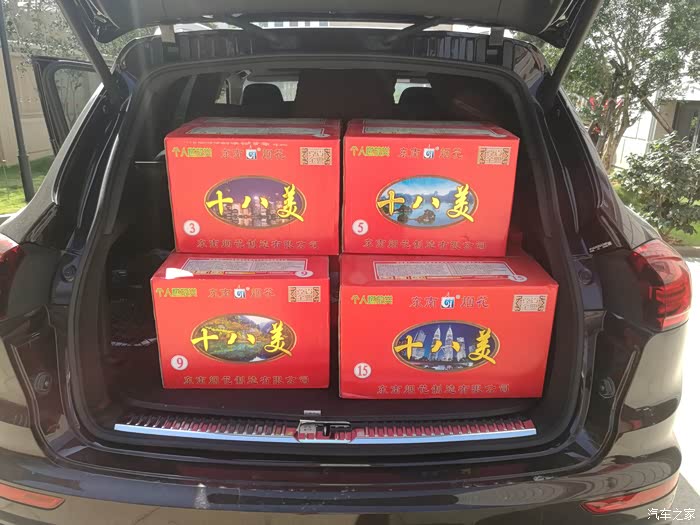 刚刚拿卡宴拉了些烟花,后箱烟花装多了,盖了几次没盖上,然后按关门键会嘟嘟响