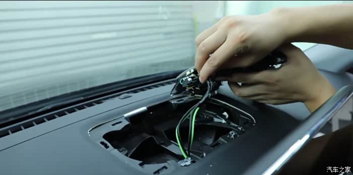 将中置音响线接头引到上方,和原厂喇叭相接