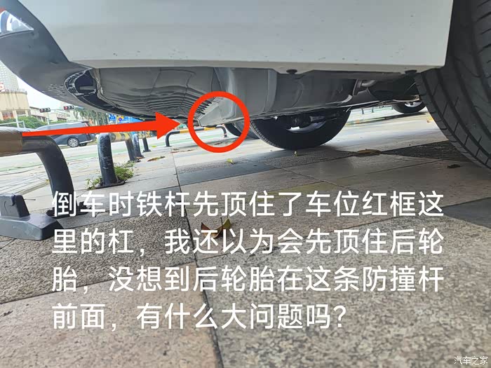 请问各位老铁,车尾箱下面底盘红框这里的铁杆是防撞梁还是什么结构?刚才倒车退得比较后,我还以为会是后轮胎顶住地面那条铁杆,没想到是红框位置先顶住了,倒车速度慢但撞上还是有一声响声,请各位给解答一下,谢谢!