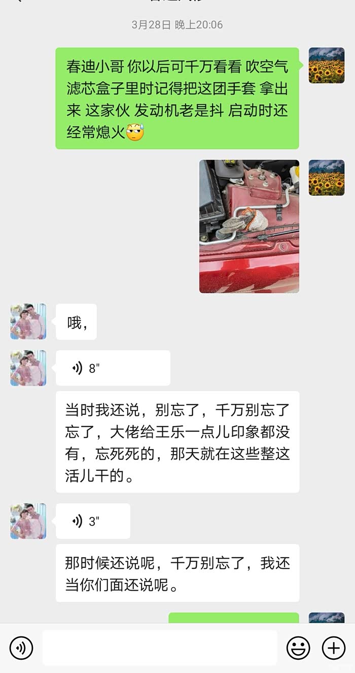 当时堵在空气流量计前面,防止气枪吹空气滤芯盒子里时灰尘沙土等进入发动机里面的,这小哥光顾着和我吹牛逼了,吹完了忘了把这团手套拿出来了,这小哥十多年来的也是第一次碰到这款车,这家伙