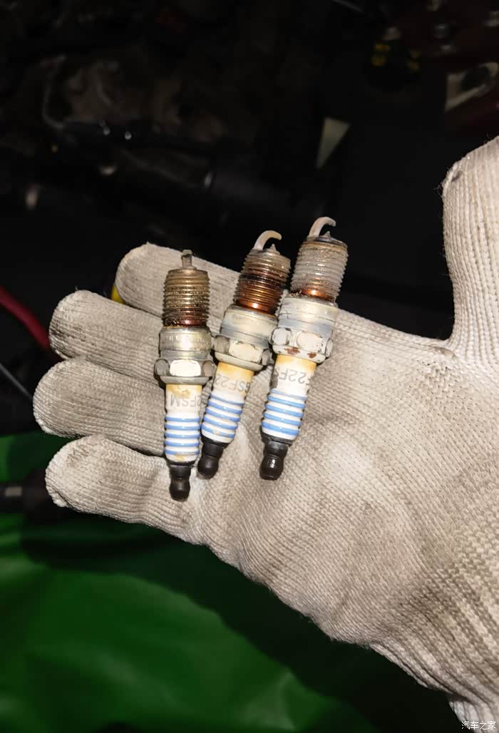 左边的火花塞好像就没怎么换过,这火花塞是不是原厂的不得而知