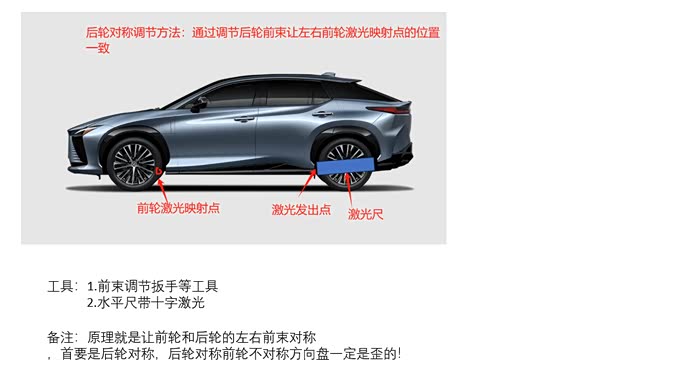 和一些兄弟交流,感觉有的会担心这个误差比较大,比不上机器的一分两分来的精确,首先机器可以做好的话自然不必这么麻烦来搞这个,其次我的建议是先买个激光尺去看看机器调的是不是后轮离所谓对称差距非常大!在就是可以去看看新车或者人家没有动过的车! 是不是?做事要有逻辑。